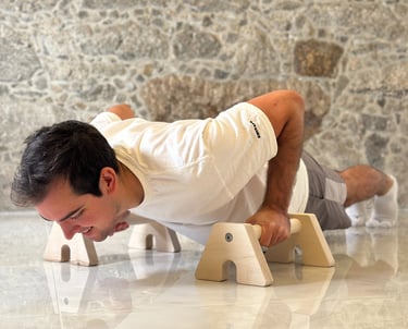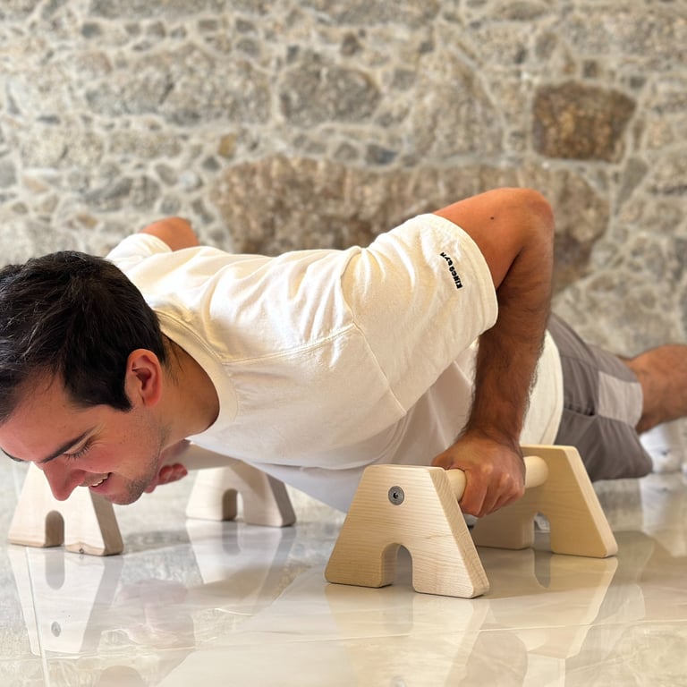 Erlebe Training auf höchstem Niveau mit den A-LIGN Parallettes. Gefertigt aus hochwertigem Ahorn-Vollholz und rostfreiem Edelstahl, bieten sie dir langlebige Stabilität und eine edle Optik. Ihre präzise Verarbeitung sorgt für einen sicheren Stand, damit du dich voll und ganz auf deine Übungen konzentrieren kannst – von Push-Ups bis zu Handständen und mehr.